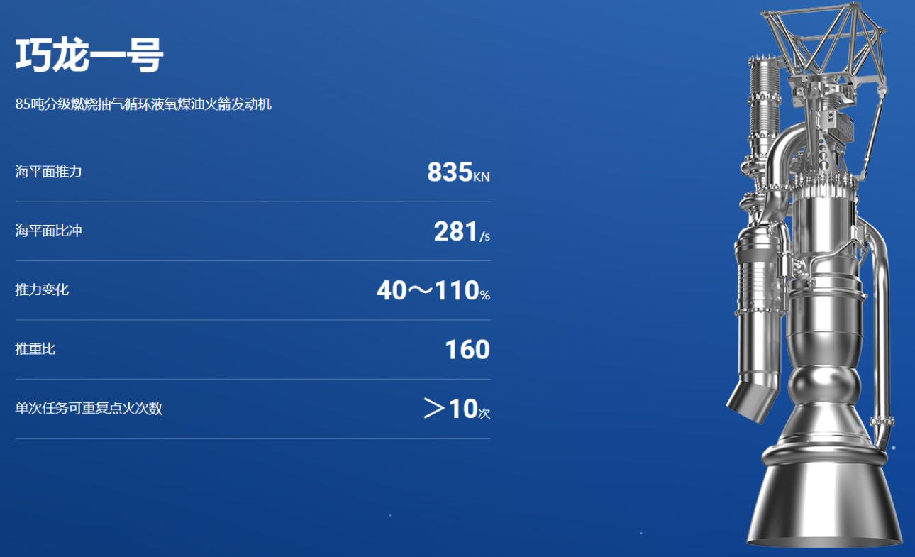 此外,2025年5月,天回航天85吨级分级燃烧抽气循环液氧煤油火箭发动机“巧龙一号”已经完成200秒长程试车,试车全程发动机工作稳定高效,结构完好可靠,此次试车的成功标志着天回航天全面掌握了分级燃烧抽气循环设计技术和结构融合设计技术,为接下来发动机批产奠定坚实基础;2024年6月,天回航天2吨级分级燃烧抽气循环液氧煤油火箭发动机“小龙一号”(真空推力为2.5吨)已经完成60秒试车。该发动机系统简单、固有可靠性高、推重比高、具有大范围变推力、成本低,可广泛应用于运载火箭上面级。
