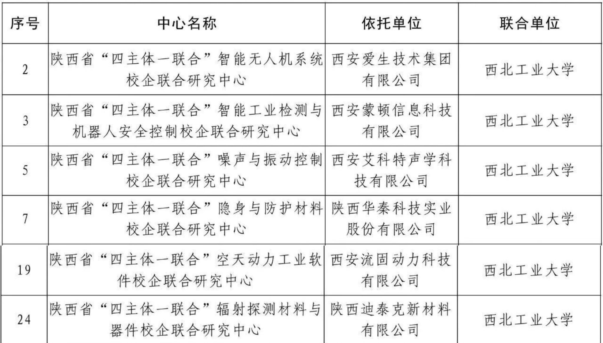 近日,陕西省科学技术厅公布了2024年底建设期满的“四主体一联合”校企联合研究中心验收结果,全省共32家中心通过验收。其中,5家以学校资产公司/科技园公司成果转化企业(爱生集团、艾科特、华秦科技、流固动力、迪泰克)为依托单位,1家以学校国家大学科技园孵化企业(蒙顿信息)为依托单位,行业覆盖无人机、工业软件、新材料、信息安全等多个前沿领域,展现了我校在推动科技成果转化和服务地方产业发展方面的显著成效。