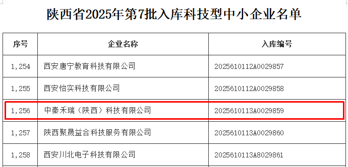 中秦禾瑞凭借其在智慧农业领域卓越的科研技术和创新能力,于12月先后通过2025年陕西省第七批科技型中小企业和陕西省第四批高新技术企业认定。两项认定标志着公司在发展潜力和综合实力上迈上了新台阶。