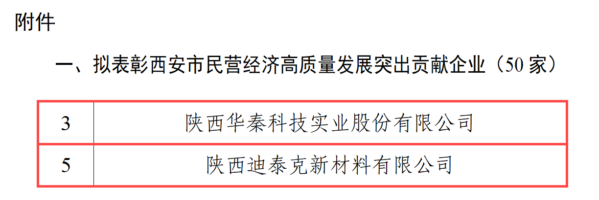 近日,由西安市发改委、市人社局组织评选并表彰的“西安市民营经济高质量发展突出贡献奖”名单出炉,我校科技成果转化企业、有关教师光荣登榜:陕西华秦科技实业股份有限公司(以下简称华秦科技)、陕西迪泰克新材料有限公司(以下简称迪泰克)获评“西安市民营经济高质量发展突出贡献企业”;西安因诺航空科技有限公司(以下简称“因诺航空”)董事长呼卫军(航天学院教师)荣获“突出贡献企业家”称号。