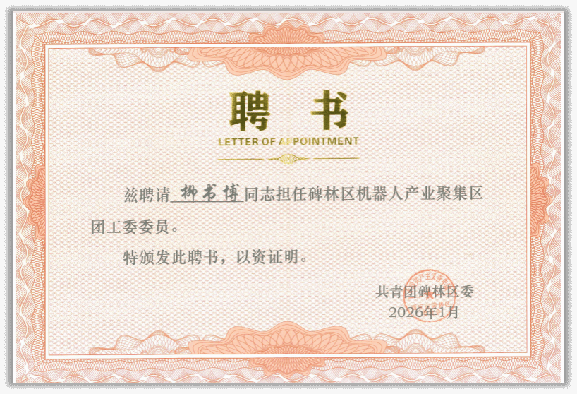 2026年1月28日,云导智能及其创始人柳书博分别入选碑林区机器人产业聚集区团工委委员单位及委员。碑林区依托丰富的高教资源,积极布局机器人产业,汇聚了多家机器人核心企业。云导智能长期深耕先进视觉与机器人具身智能领域,此次入选将助力地方机器人产业协同创新建设,携手各方推动碑林区机器人产业聚链成群,为区域经济高质量发展注入新动能。