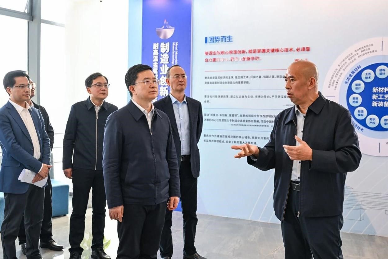 近日,重庆市委常委、两江新区区委书记罗蔺前往我校成果转化企业——重庆三航新材料技术研究院有限公司(以下简称“三航新材”)开展实地调研,详细了解以三航新材为依托建设的“耐高温金属材料及结构件精密成形制造业创新中心”有关情况。