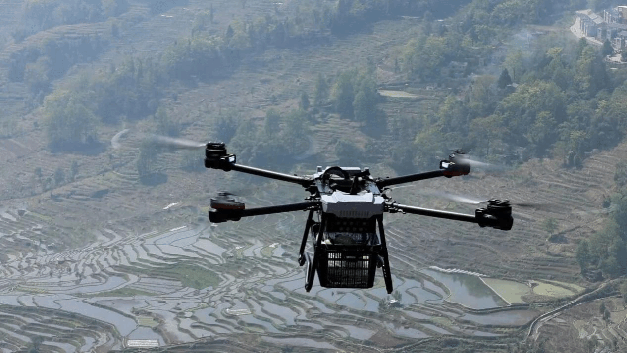 “爱生灵鹊·红运”无人机,是针对地处山区的云南省红河县定制研发的一款用于运输农产品等物资的无人机,其专为复杂山地物流设计,可解决优质农产品因山路漫长颠簸,在“出山”途中面临的损耗与贬值问题;具备载重40公斤、抗7级风、在2000米高空稳定作业的能力。