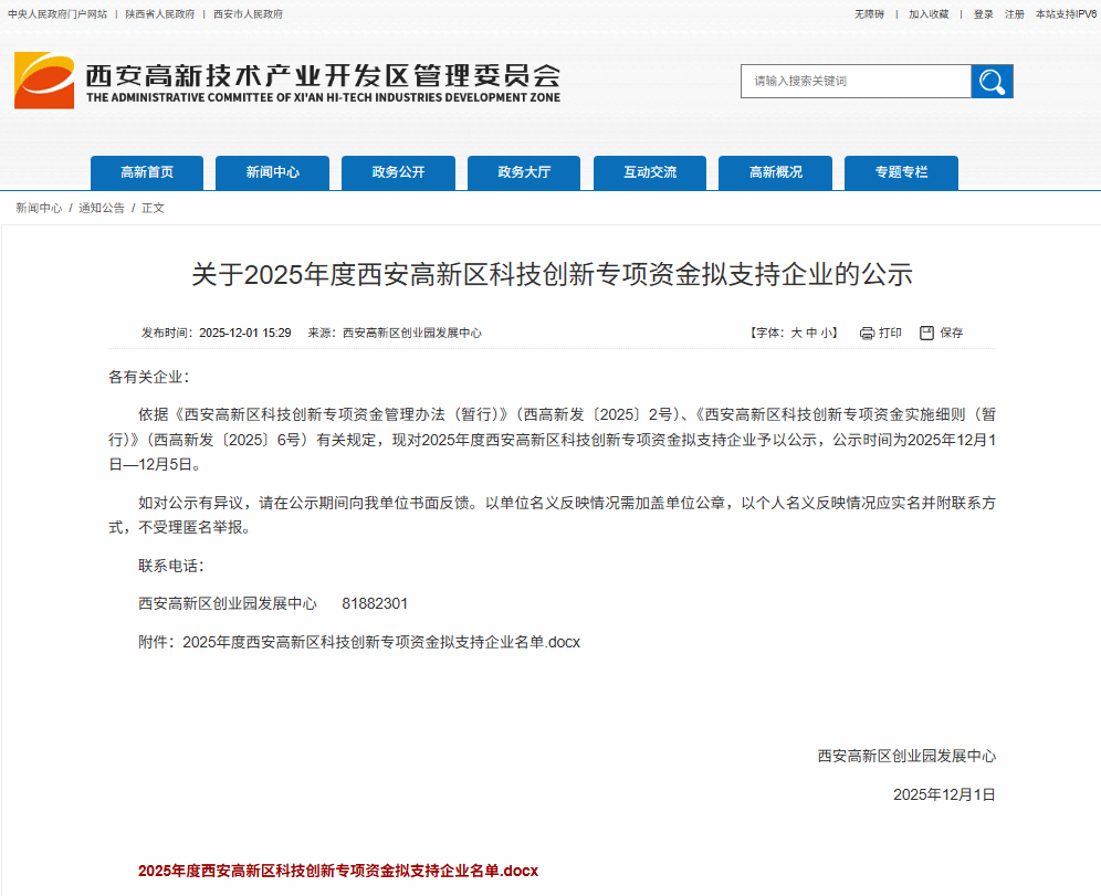 2025年6月,西安高新技术产业开发区管理委员会发布了《关于开展2025年西安高新区科技创新专项资金项目企业申报工作的通知》。该专项资金旨在助力科技型初创企业跨越“死亡谷”,加速科技成果转化进程,推动企业发展壮大,重点聚焦电子信息、新能源汽车、智能制造、生物医药及人工智能、未来产业等高新区优势及六大未来产业领域。