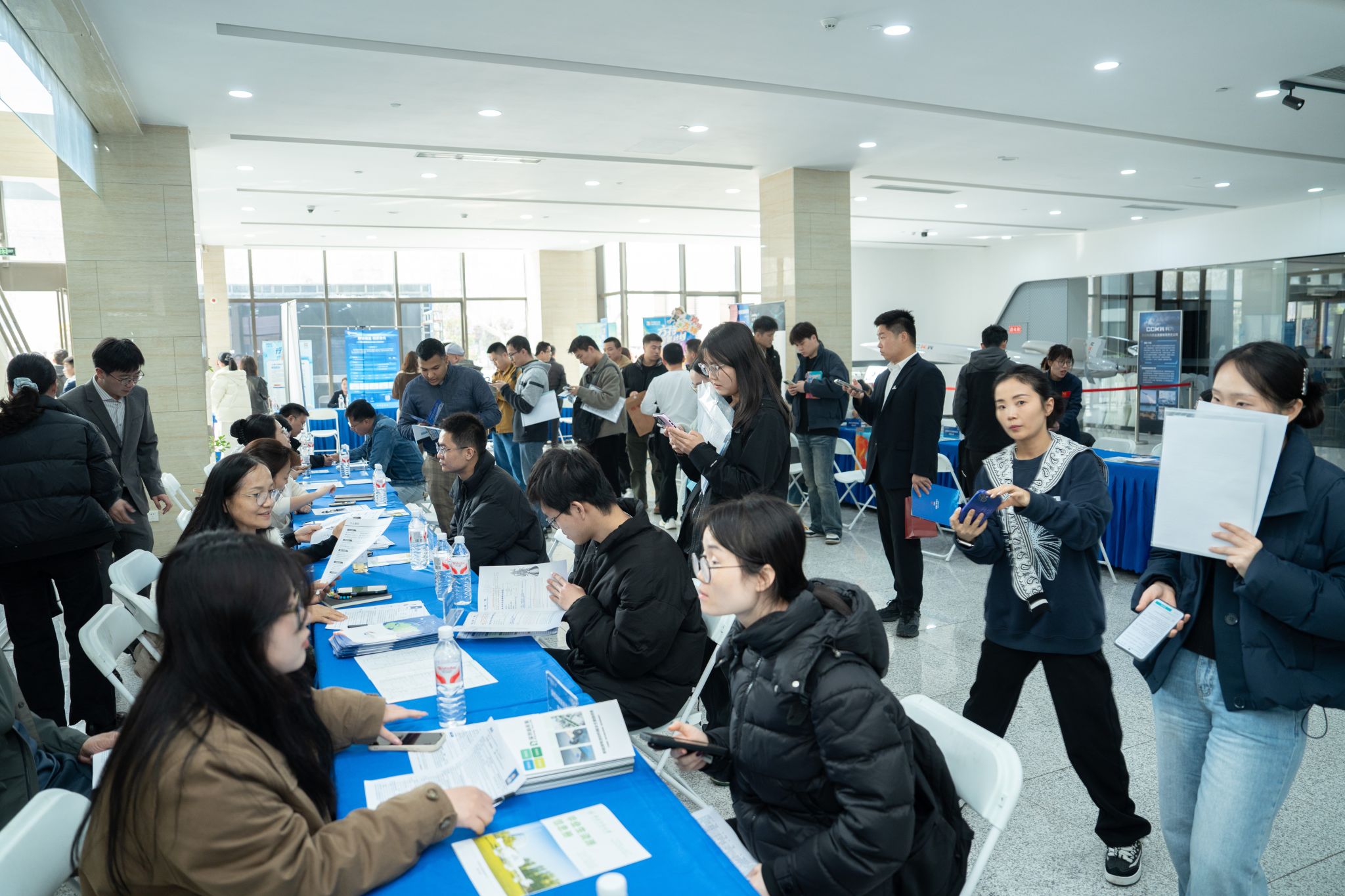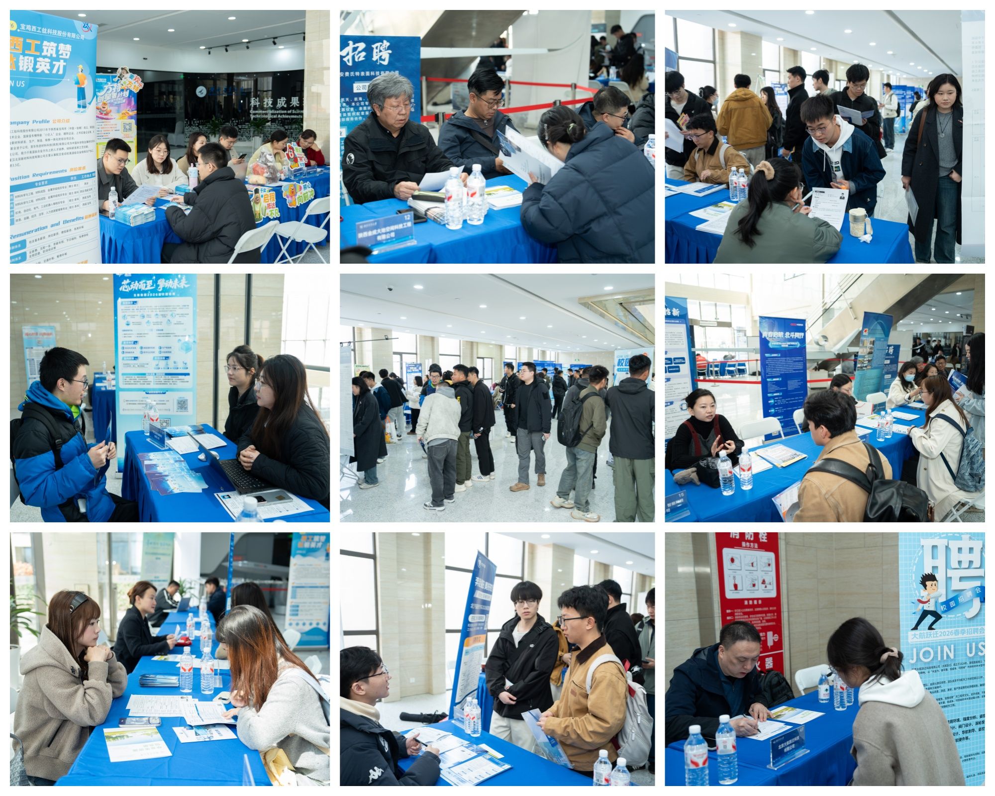 来自西北工业大学、西安电子科技大学、西安工业大学、西安邮电大学、西安航空学院、西安明德理工学院等高校的300多名毕业生以及200多名退役军人到场投递简历、咨询洽谈并进行现场面试。