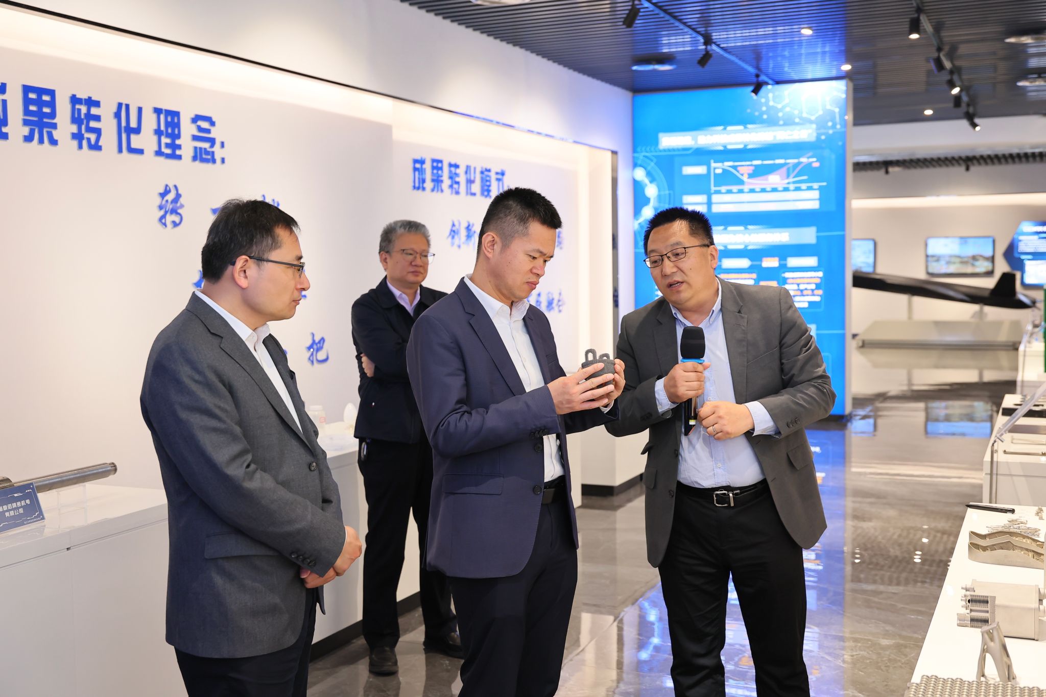 座谈会前,殷敬伟一行参观了学校科技馆和科技成果转化展厅。